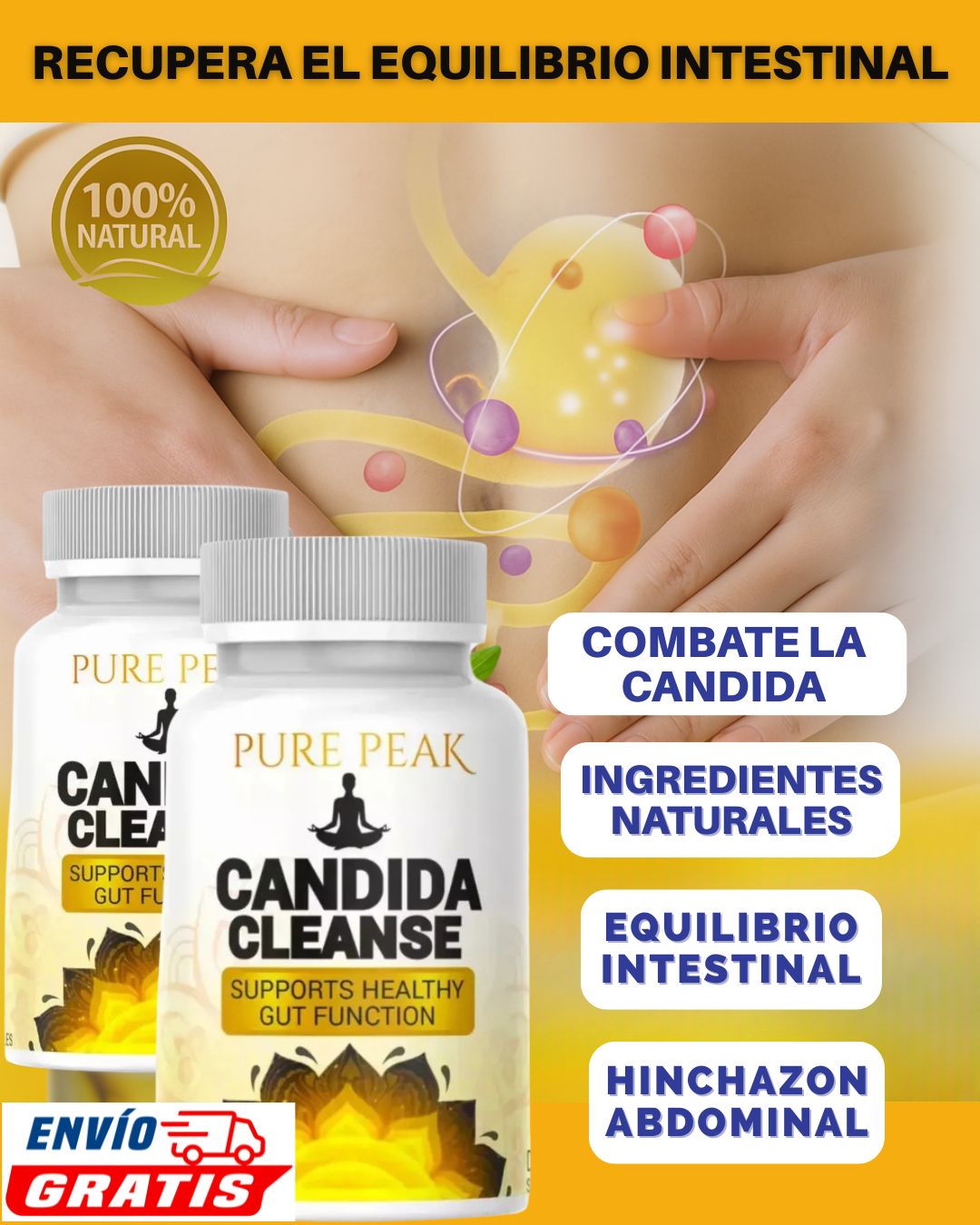 CANDIDA CLEANSE detoxifica tu organismo, corta los antojos y devuelve a tu digestión la ligereza que extrañas, todo con dos cápsulas al día.